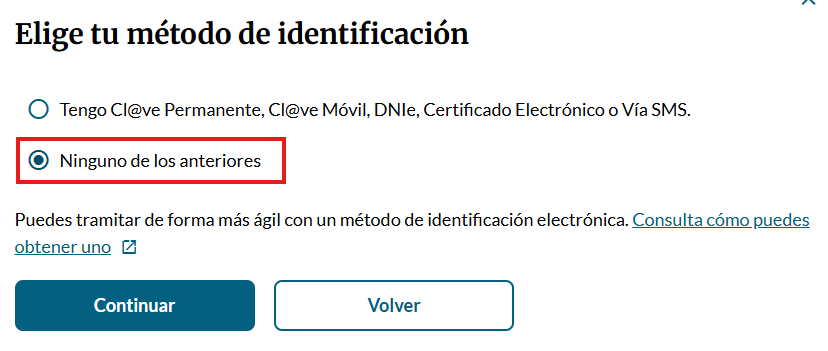3.「Ningunno de los anteriores」を選択し「Cuntinuar」